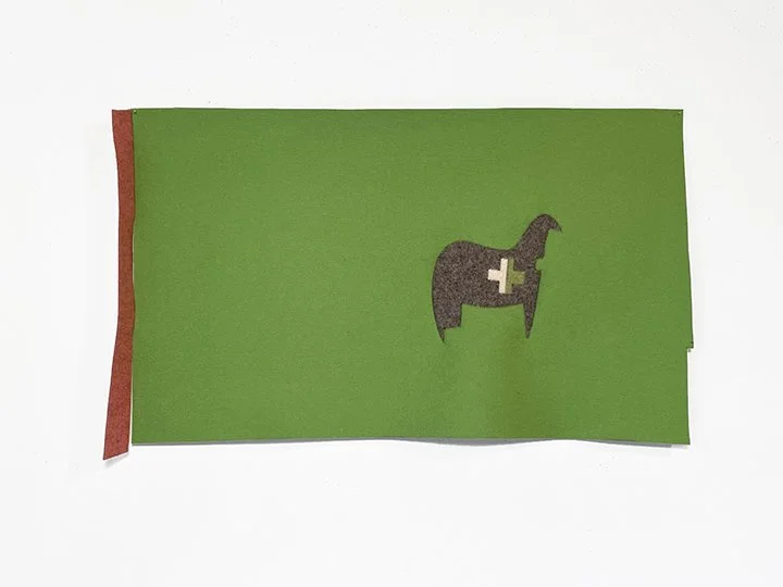 No I like flags 25 (creature/green), 2023. Industrial wool felt hand stitched with silk thread. 21" x 36"