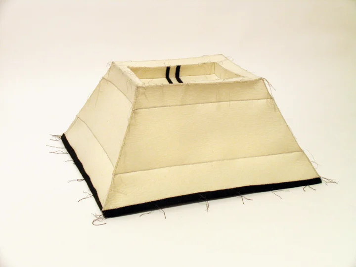 This series includes felt work—both freestanding and wall pieces—and works-on-paper. As in the preceding bodies of work, the felt pieces are stitched together by hand with pale grey silk thread. This (doomed) attempt at regularity is in opposition to the compressed chaos that is felt. Like the earlier work, the freestanding pieces are self-supporting; there are no armatures or additional supporting materials. The seams function as exoskeletons, enabling open interior spaces, while simultaneously provoking and resisting felt's natural inclination to buckle, stretch, droop, and torque. When grouped, they form settlements of basic architectural forms. In the felt wall pieces, shapes are cut out and then inlaid (stitched) into position not unlike marquetry.